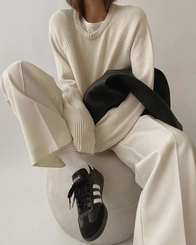 Mood boards featuring a fusion of suiting separates and luxe sweaters crafted in alpaca wool and cashmere combined with unexpected footwear; integrating delicate details & textures with classic silhouettes make for subtle statements & style longevity.